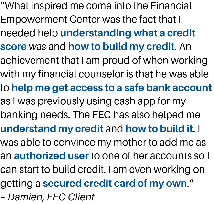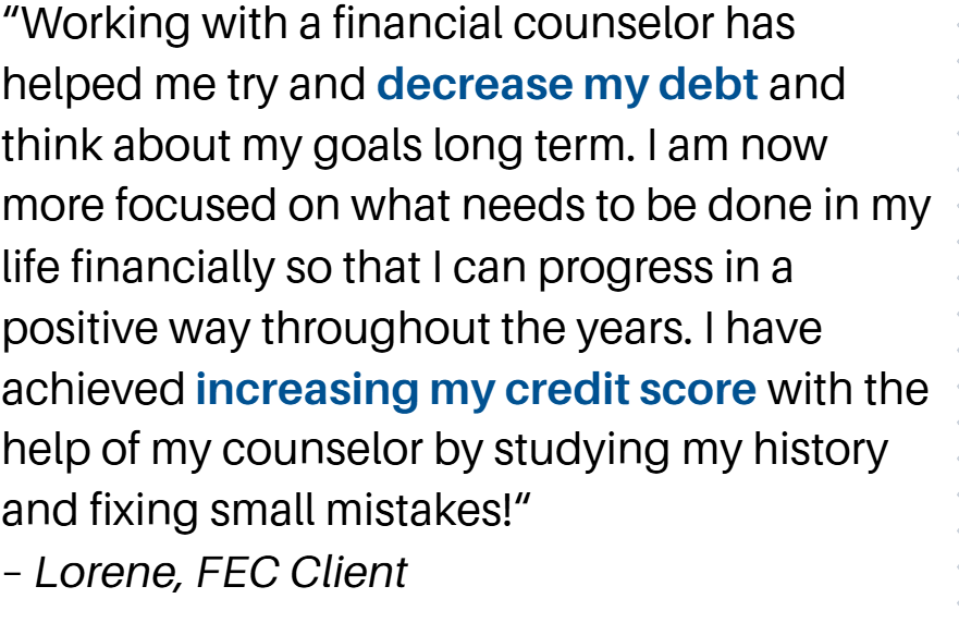 If you're 18 or older and live in Pueblo County or surrounding counties you can access our free financial counseling services.